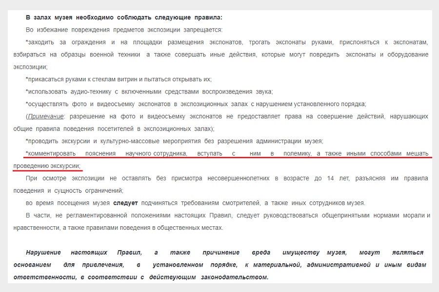 The Great Patriotic War Museum has its own rules.