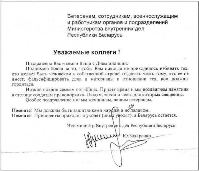 This is how Yury Zakharanka used to congratulated on Police Day.