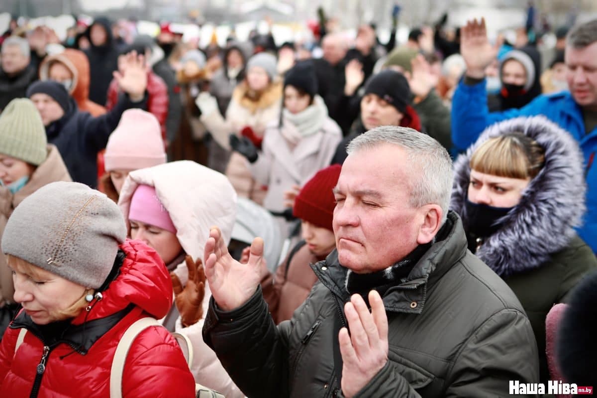 In Sukharava, Minsk, many people gathered for an open-air prayer service near the New Life church, the building of which was taken from the parishioners by the state.