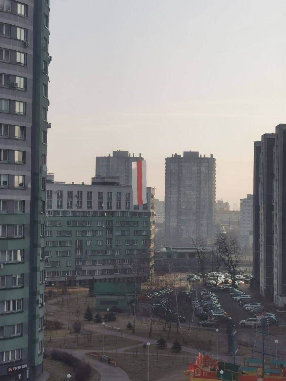 A Huge White-Red-White Flag Was Raised over the Minsk District "Cascade" in the Morning