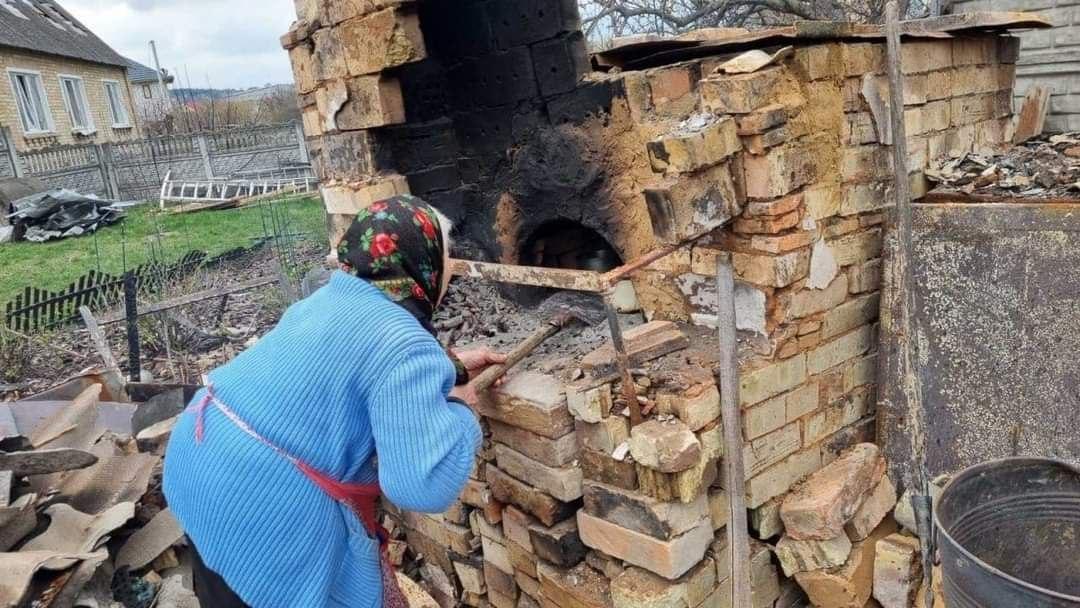 08:24 Horenka village, Kyiv region. An old woman bakes on the ruins of her house, destroyed by the Russians.
