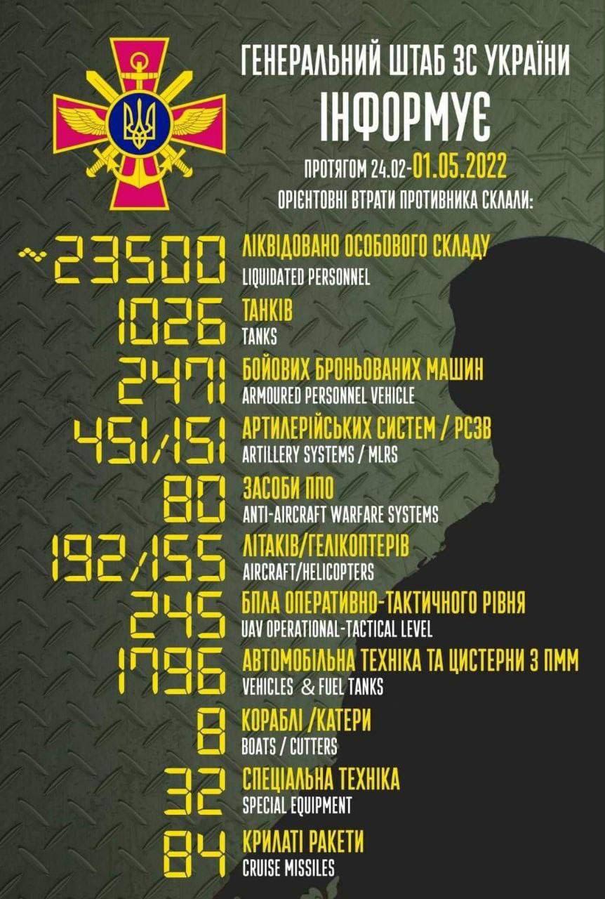 11:28 The total losses of the Russian army in the war with Ukraine have already amounted to 23,500.