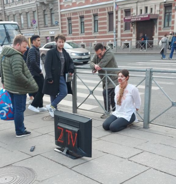 20:09 Activist Anna Anisimova was detained in St. Petersburg. She chained herself to a fence next to a TV with the inscription "Z TV" and the image of Vladimir Solovyov.