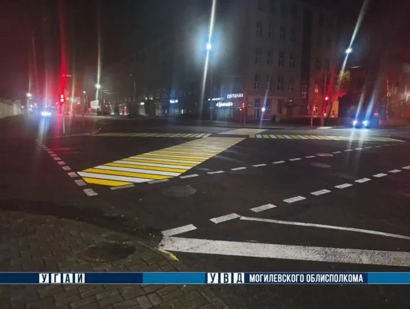 A diagonal crosswalk has appeared in Mogilev at the intersection of Leninskaya and Timiryazevskaya Streets. Now pedestrians can cross the intersection diagonally, instead of first crossing one and then the other street.