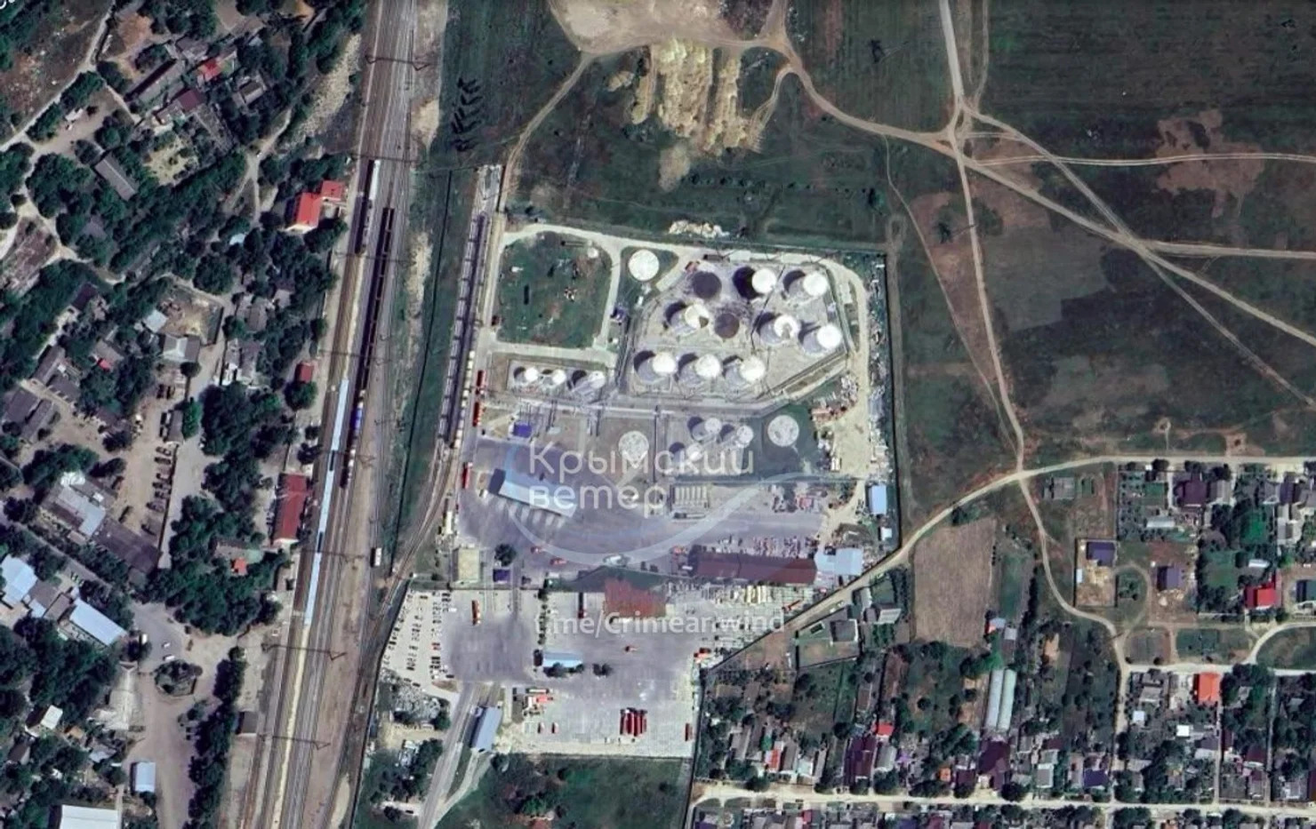 Subsequently, the monitoring channel released a satellite image of the attacked oil depot in Gvardeyskoye. According to analysts, the facility belongs to the ATAN gas station network, which is the largest network of leading gas stations in occupied Crimea.