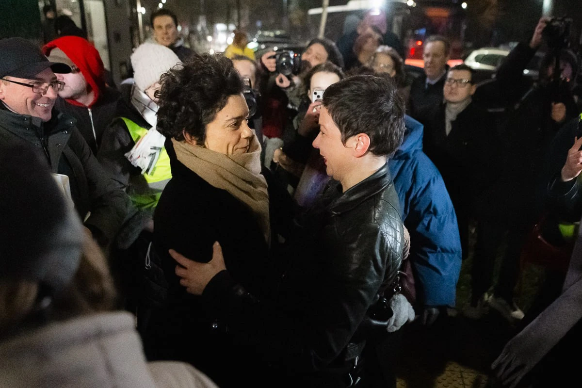 Ex-political prisoners were met at night by volunteers, journalists, diplomats.