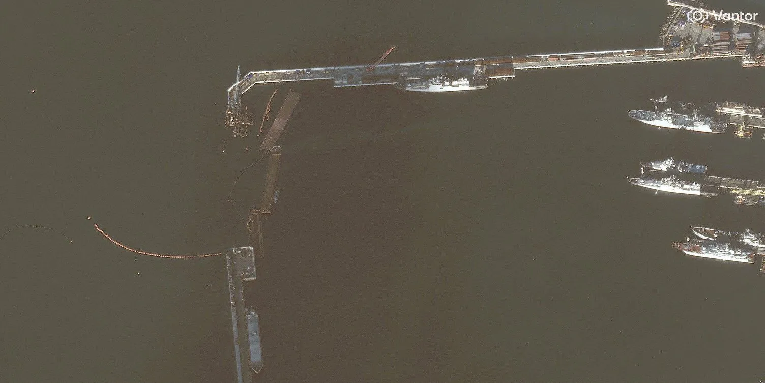 The fact that the Sub Sea Baby hit the pier near the Varshavyanka is confirmed by satellite images (below) that were taken the next day, December 16. But the same photos confirm the validity of the Ukrainian Security Service's claim that the submarine "received critical damage."