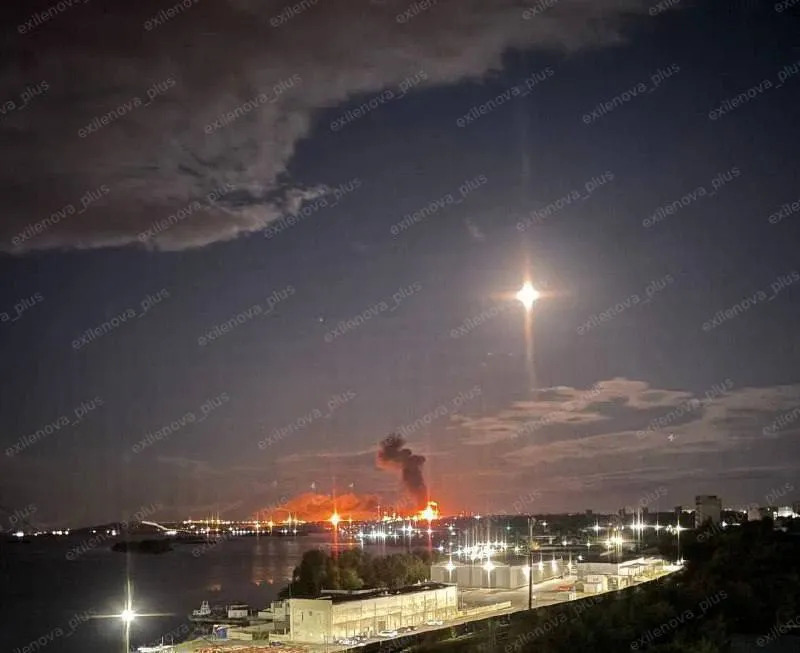 At the same time, eyewitnesses began publishing videos of UAVs striking the territory of an oil refinery, resulting in powerful explosions near the refinery. After the attack, a heavy fire started on the site and a huge column of thick black smoke rose, which is typical of burning oil products.