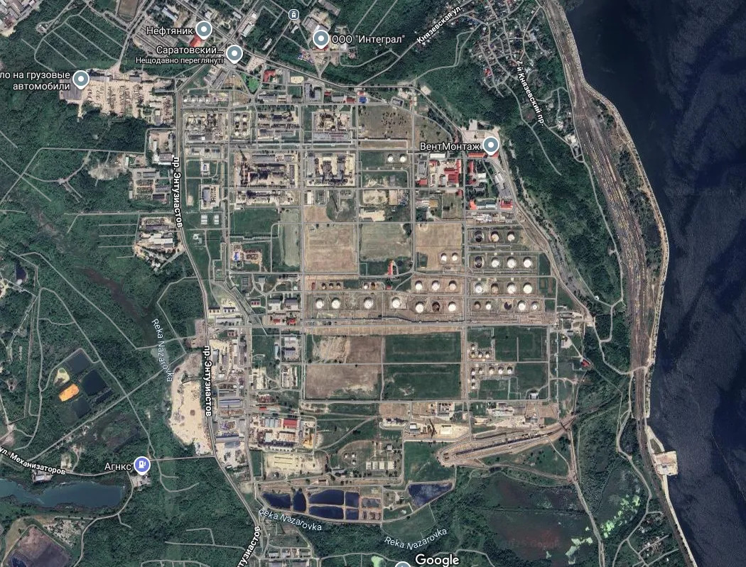 In addition, monitoring channels published a map that confirms that the target of the massive drone attack in Saratov was exactly the oil refinery. The images show that it was at the refinery that a massive fire broke out.