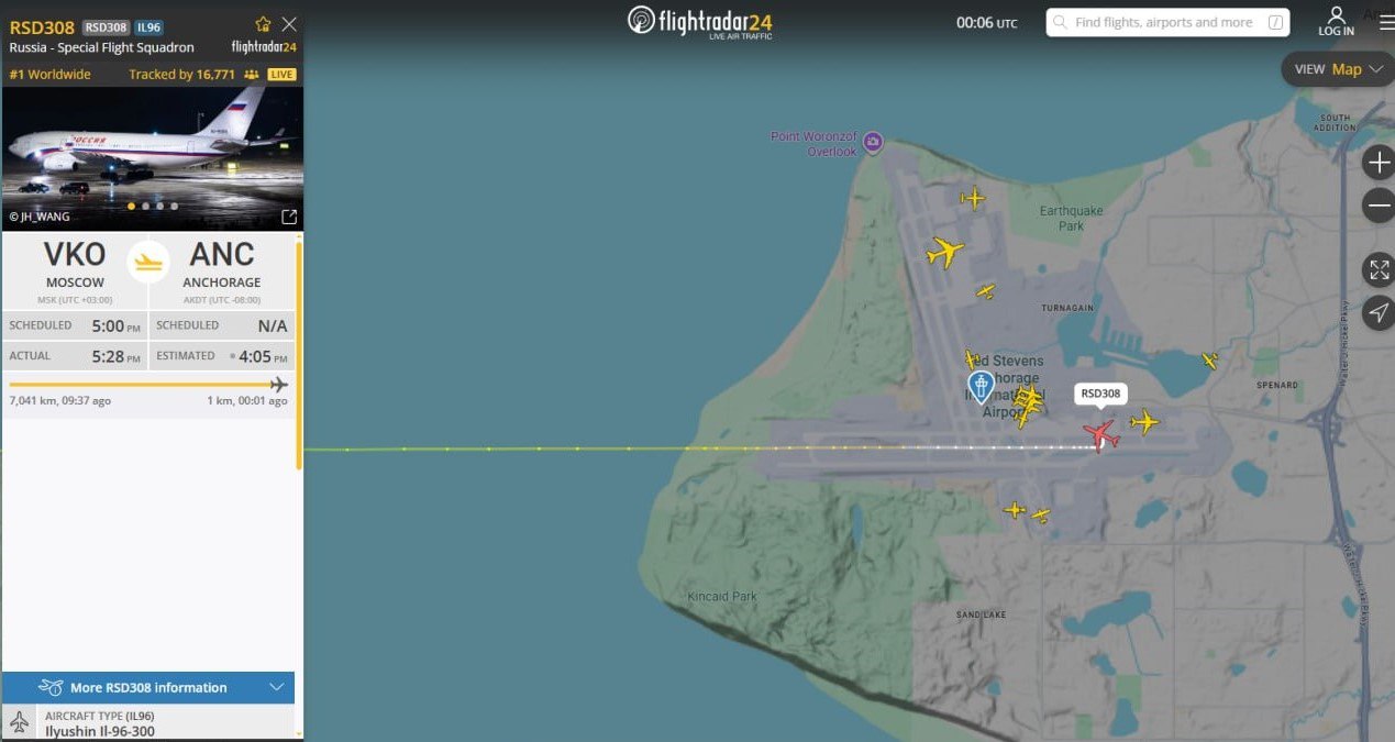 In the meantime, according to Flightradar24 service, an Il-96-300 aircraft of the Rossiya special flight unit arrived at Anchorage airport in Alaska from Vnukovo airport.