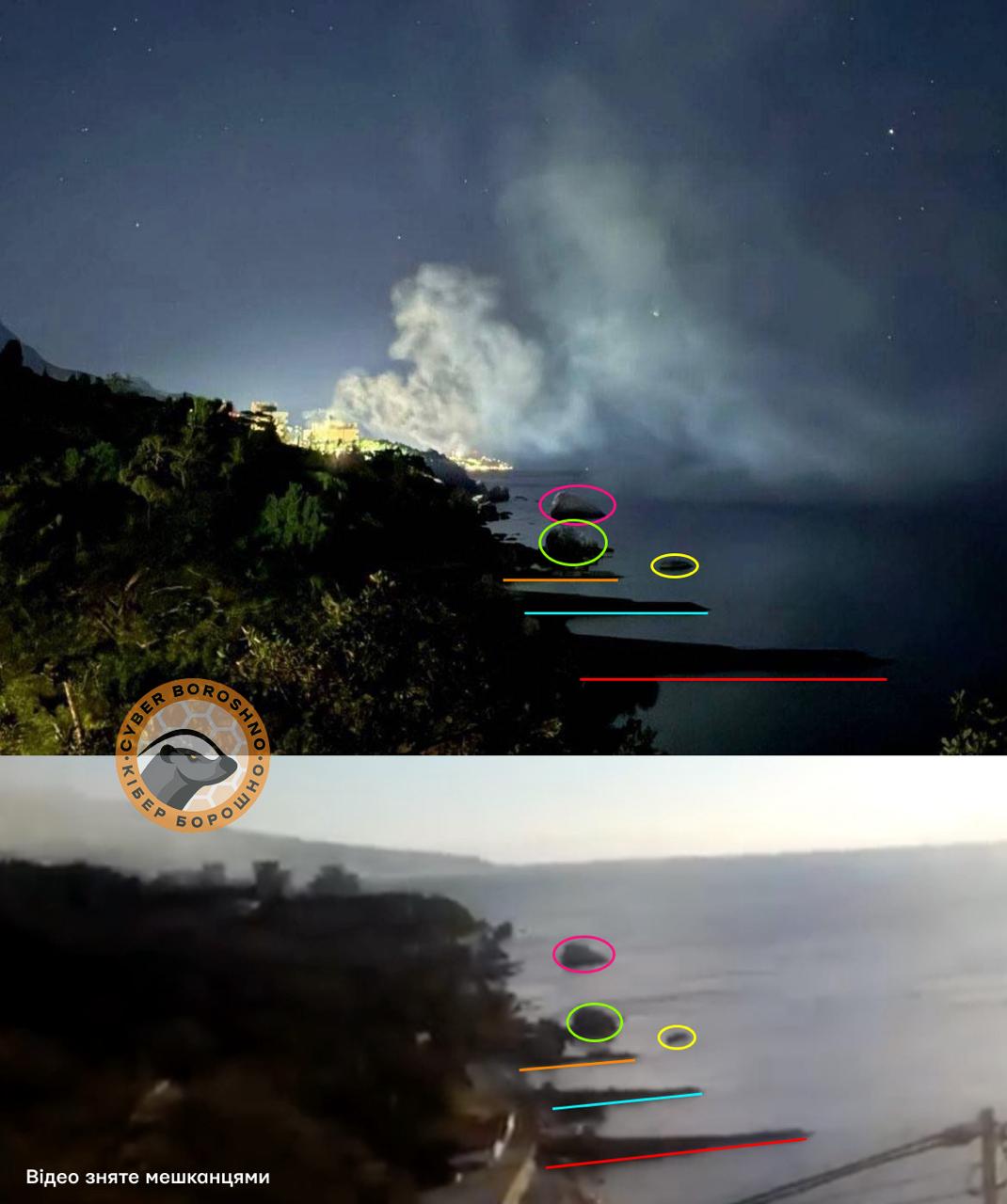 In the meantime, Telegram channel CyberBoroshno publishes a photo of the fire from the village of Sanatornoye, neighboring Foros.