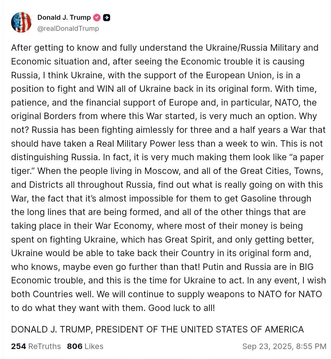 The American president emphasized that with time, patience and help from NATO partners, Ukraine has a real chance to regain territory. He characterized Russia as a country that has been fighting aimlessly for more than three and a half years and compared it to a "paper tiger."