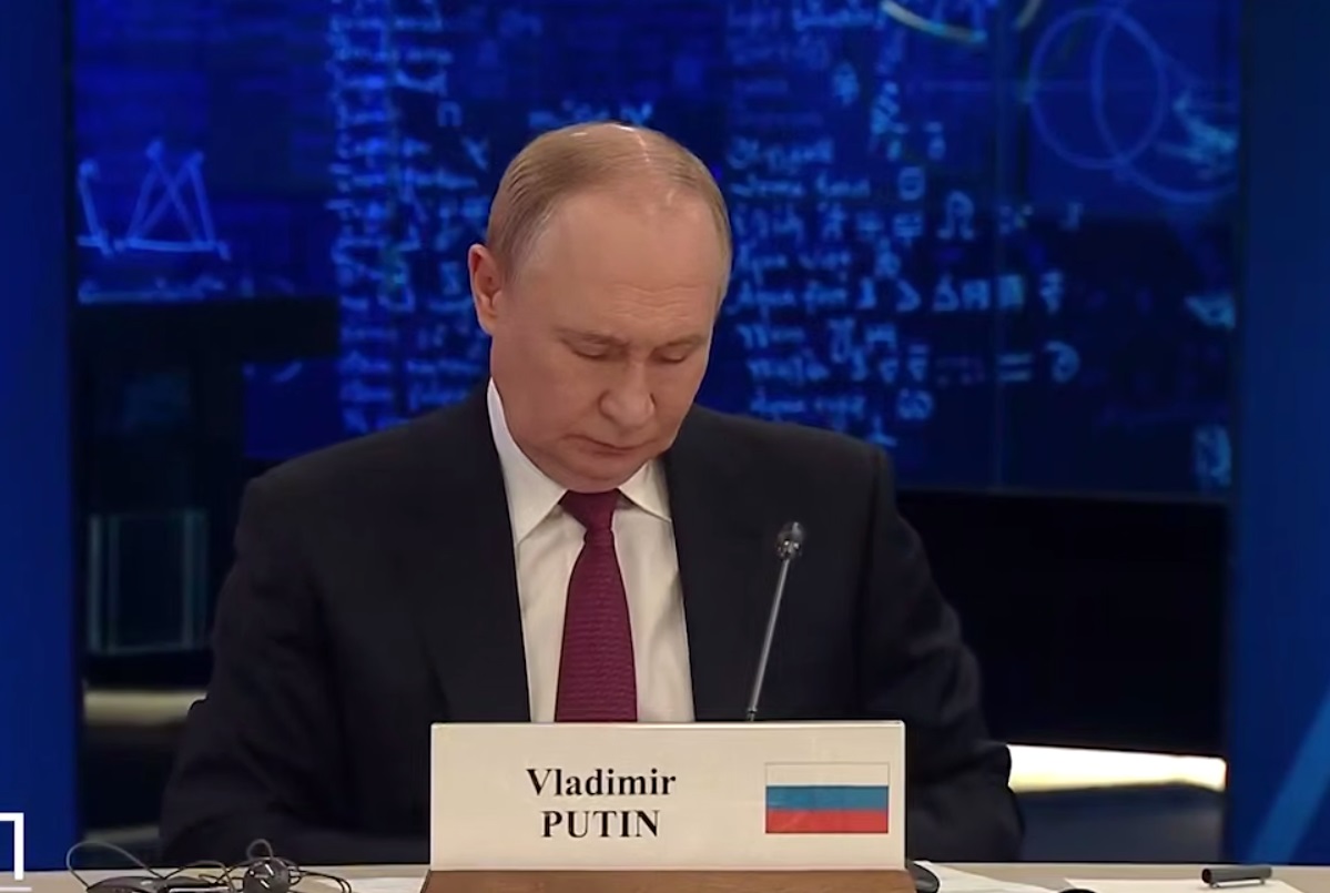 Only Putin tried his best to hold back, hiding his eyes in his desk.