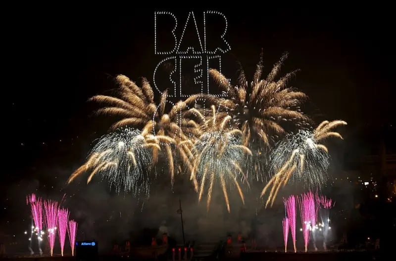 In Barcelona, the New Year's Eve show was held on Mount Montjuïc and consisted of four parts inspired by the four elements: air, water, earth and fire. The centerpieces were pyrotechnics, drones and music.