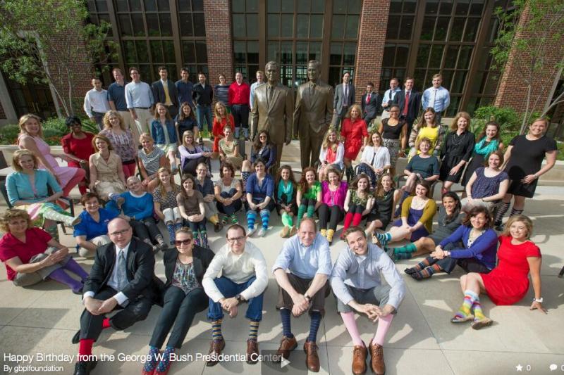 Флэш-моб в США: тысячи американцев поздравили Буша-старшего в ярких носках