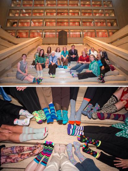 Инициатива проведения флеш-моба «Нет скучным носкам!» исходила от сотрудников Президентской библиотеки Джорджа Буша. По его результатам на сайте учреждения были опубликованы более 200 фотографий. К акции присоединились и другие желающие поздравить Буша, выложившие фото на своих ресурсах. Сам Буш-старший тоже присоединился к флешмобу, опубликовав в социальной сети «Фейсбук» фото своих ног в двух разных носках необычной расцветки.