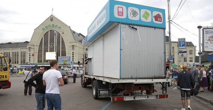 Владельцы установленных у вокзала ларьков сообщили, что их убирают из-за визита в столицу Украины Патриарха Кирилла и белорусского правителя Александра Лукашенко.