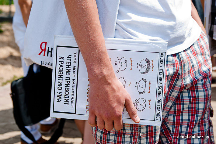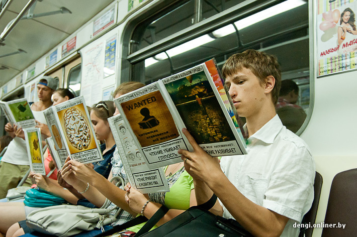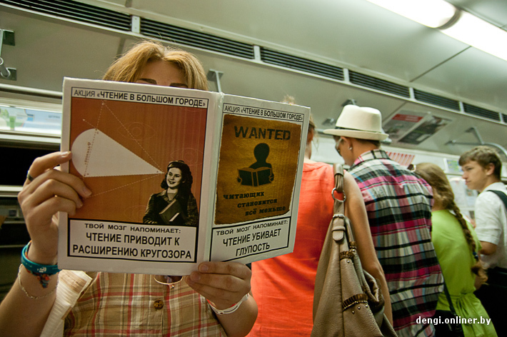 Тематическую акцию провели вчера в столице. Участники собрались возле одной из станций метро. Каждому из них раздали по книге, на которую была надета специальная обложка: с обеих ее сторон размещены мотивирующие картинки на тему чтения, а внизу — лозунги, стилизованные под надписи на пачках сигарет. К примеру, «Ваш мозг напоминает: чтение может стать причиной развития ума», пишет onliner.by.