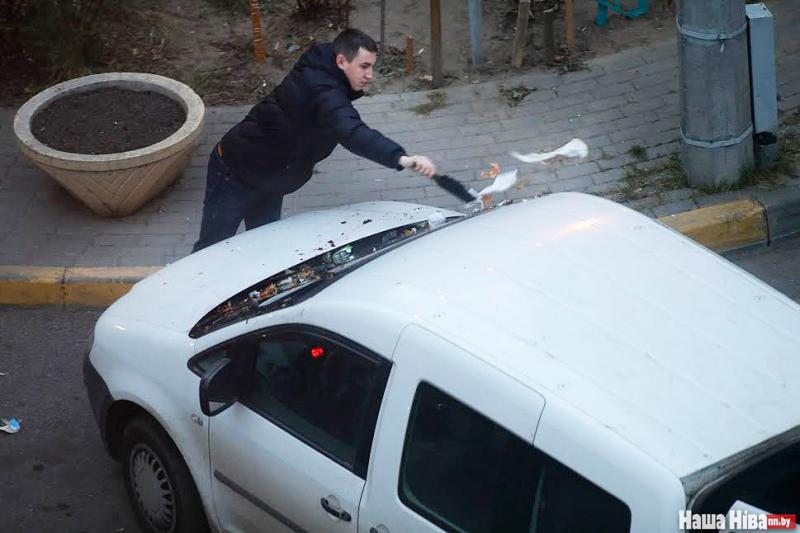 Дворник несколько раз хлопал по машине, звучала сигнализация, но хозяин так и не появился. Тогда расстроенный работник ЖКХ высыпал содержимое мусорного бака на капот.