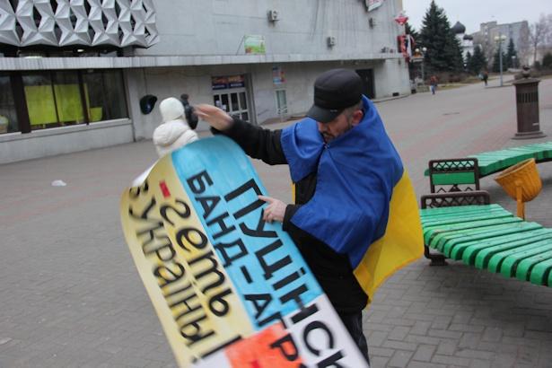 Через 20 минут после начала пикета Владимира Гундара задержали сотрудники милиции.