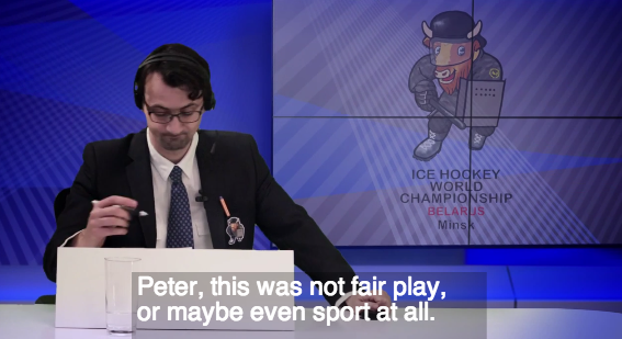 Завершается ролик словами: “Это была нечестная игра, или может вообще не спорт. Надеемся, в третьем периоде будет лучше!”