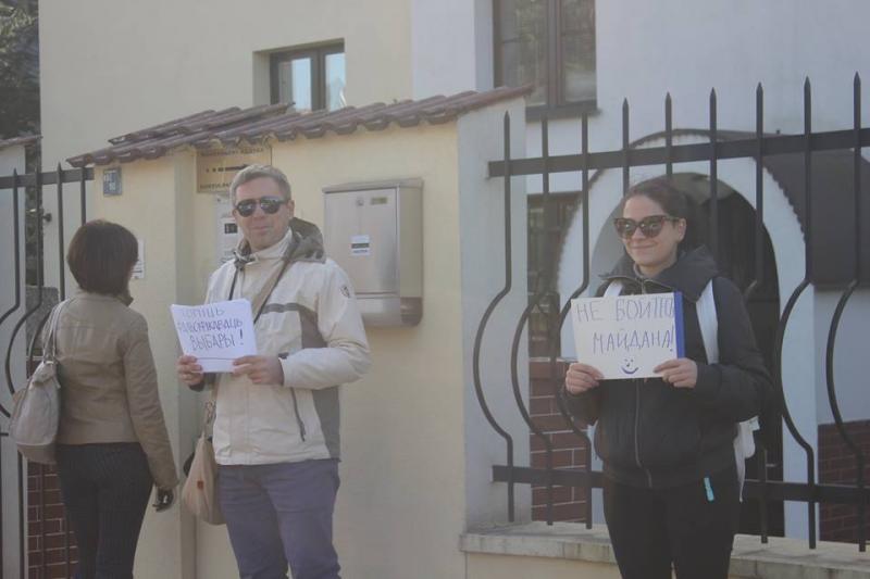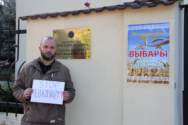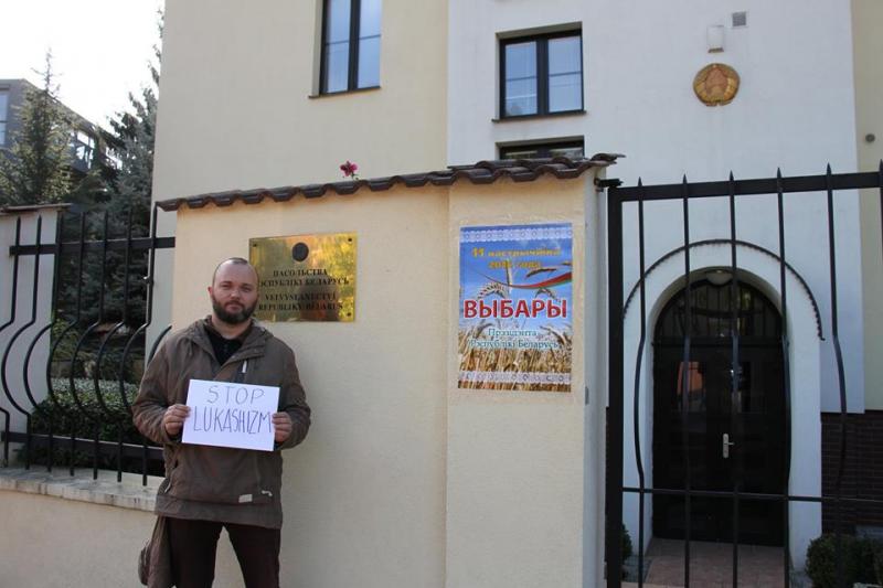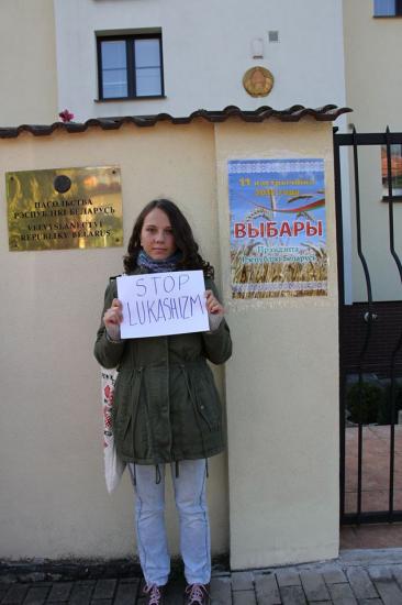 11 октября украинские и белорусские активисты в Праге пикетировали посольство Беларуси с требованием проведения честных выборов и прекращения фальсификаций, сообщает украинский Правозащитный центр «Поступ» на своей странице в социальной сети «Фейсбук».