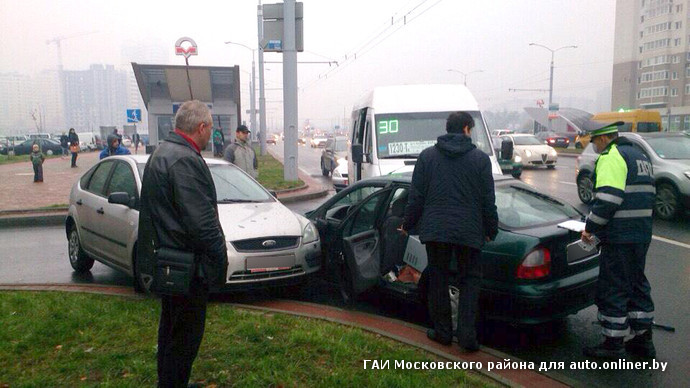 ДТП в Минске: столкнулись два автомобиля и маршрутка