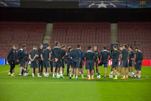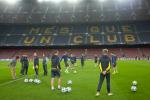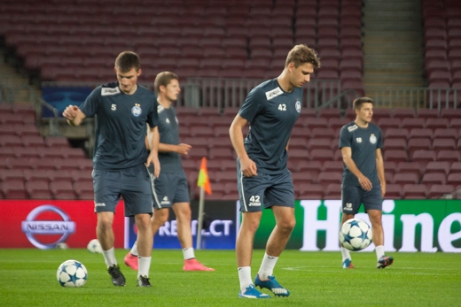 Белорусский чемпион провел официальную тренировку в преддверии поединка с "Барселоной". Занятие состоялось на стадионе "Камп Ноу", пишет сайт клуба.