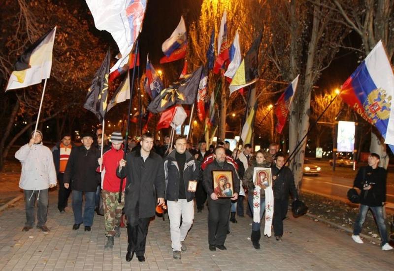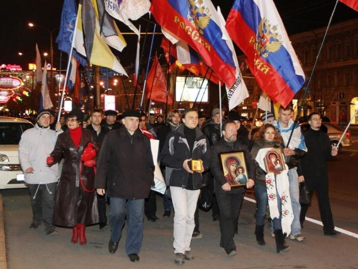 В сети опубликованы фото празднования в Донецке российского праздника "Дня народного единства" в 2011 году.