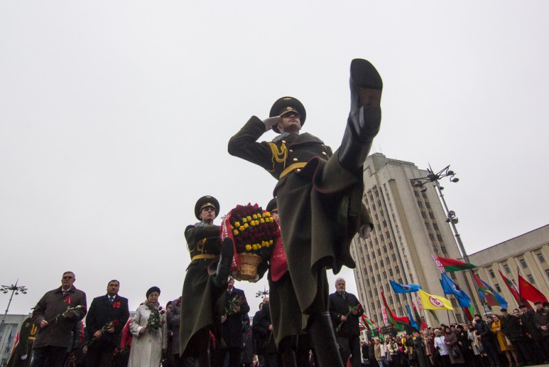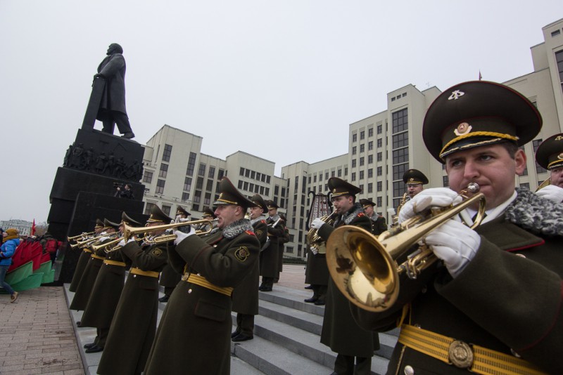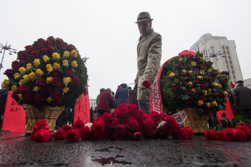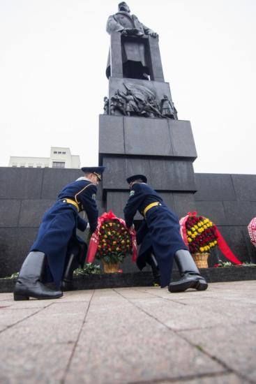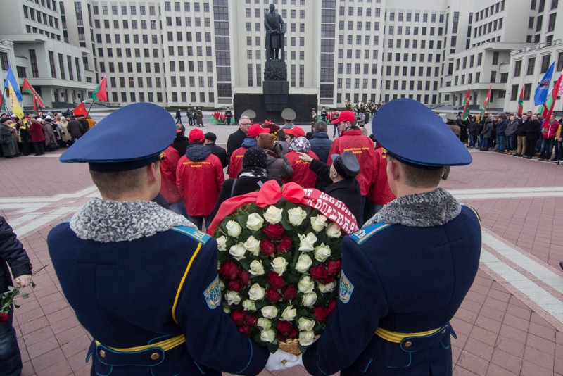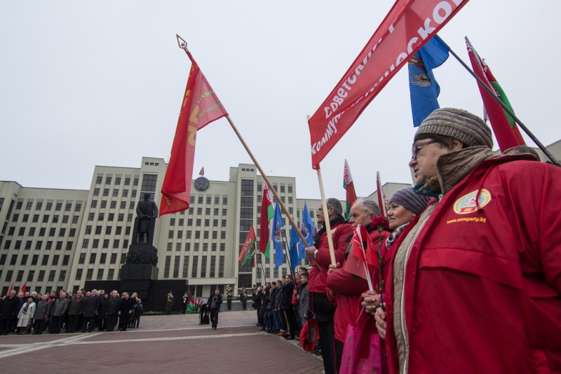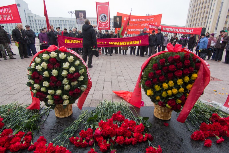 Коммунисты отмечают 7 ноября годовщину Октябрьской революции. С советской символикой и флагами БССР люди преимущественно пожилого возраста возложили цветы к памятнику Ленина на Площади независимости перед Домом правительства. Под звуки оркестра венки и букеты от белорусских чиновников возложили также солдаты, сообщает «Белсат».