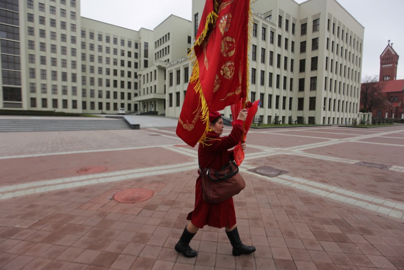 Красные полотнища с серпом и молотом, изображения Сталина и Ленина – Минск словно вернулся во времена СССР.