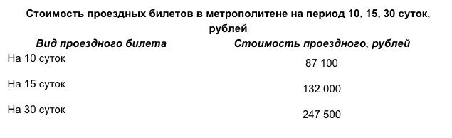 Изменилась и стоимость проездных билетов на метрополитен с любой даты на определенный период времени.