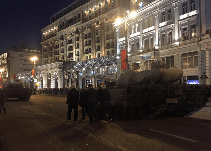 Так, "новейшие образцы российской бронетехники на платформах "Армата", а также "Курганца", "Бумеранга" и новейшая самоходная артиллерийская гаубица "Коалиция-СВ" пройдут маршрут зачехленными, чтобы сохранить интригу", отмечают местные СМИ.