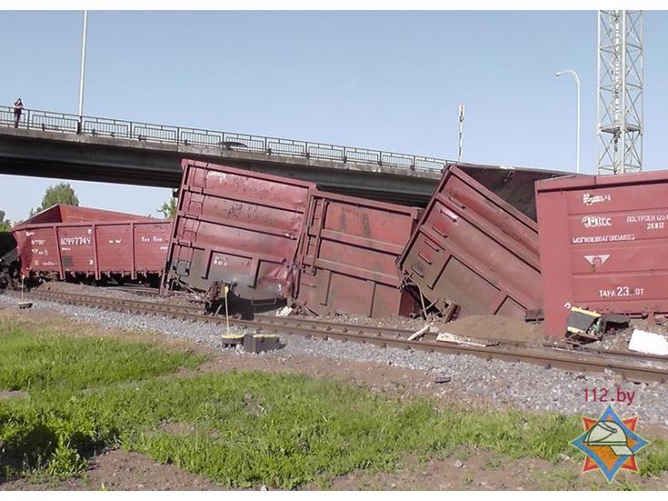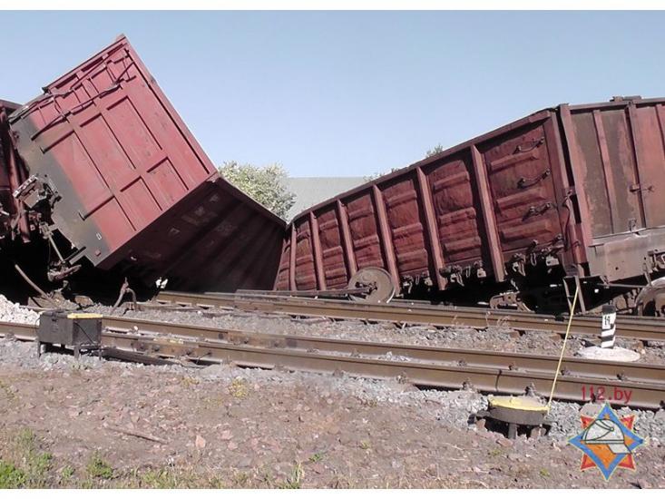 «2 июня в 07-36 в центр оперативного управления спасателям поступило сообщение о сходе с рельсов товарных вагонов при въезде на железнодорожную станцию «Светлогорск-на-Березине».