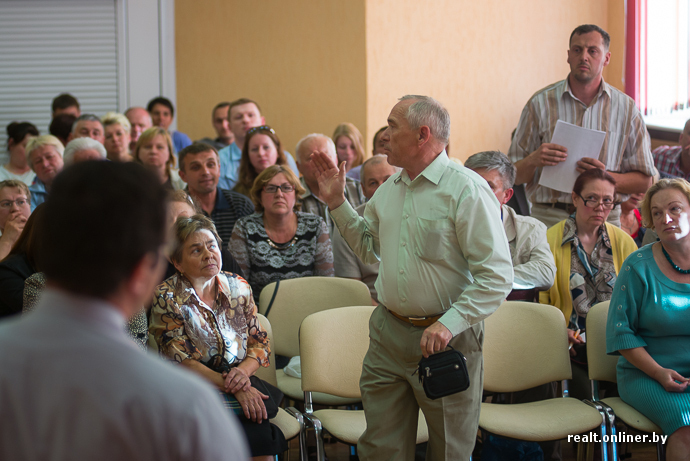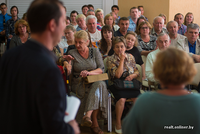 — Согласно законодательству земля и дом нераздельны. Соблюдены ли права собственности жителей, проживающих на этой территории? Как известно, имущество в Республике Беларусь неприкосновенно. Предусмотрена уголовная ответственность за уничтожение имущества. У граждан, которые здесь собрались, и у других по всему Минску изымается собственность. Сейчас вы рисуете картинки, но каким образом решен вопрос собственности? Мы могли бы проводить слушания, если бы территория была пустой, но она заселена. Сначала нужно с каждым жителем решить судьбу его собственности, а потом делать проект. Другой последовательности быть не может!