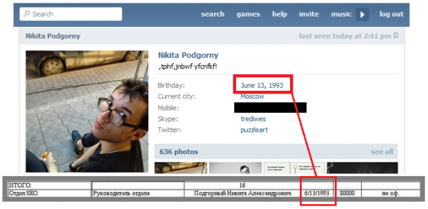 По мнению Александера, другие детали — например, метаданные изображений, размещенных Подгорным на его странице в Pinterest — косвенно подтверждают его причастность к прокремлевским сайтам. Кроме того, имя фрилансера находится в утекшем списке сотрудников агентства «Интернет-исследований»: указанная в документе дата рождения совпадает с информацией из «ВКонтакте».