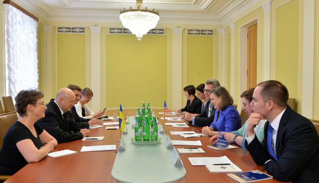 Секретарь СНБО Украины Александр Турчинов провел встречу с помощником Государственного секретаря Соединенных Штатов Америки Викторией Нуланд.