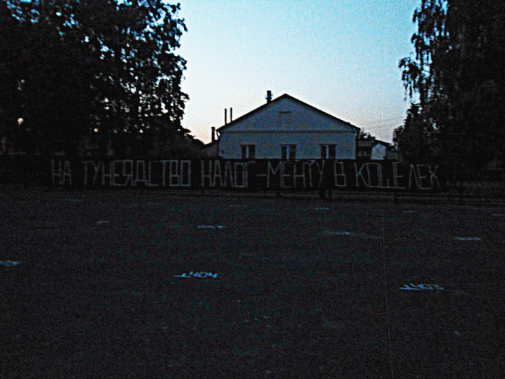 «Надпись на баннере как нельзя лучше иллюстрирует суть налога, как и других законодательных инициатив белорусского государства», - считают участники акции.