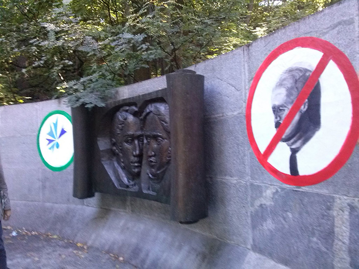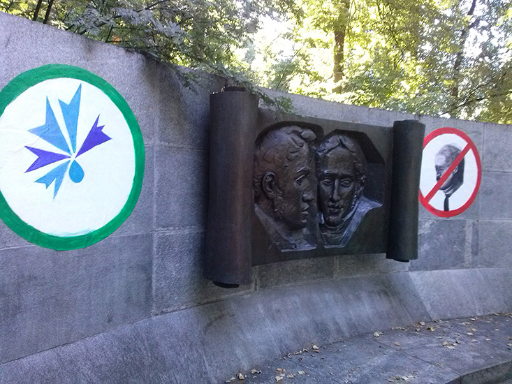 Акция была проведена у памятника Александру Герцену и Николаю Огареву в Москве, куда Евгений Авилов и Екатерина Игнатишина наклеили собственноручно нарисованные знаки, выражающие поддержку Беларуси в борьбе за лучшее будущее.