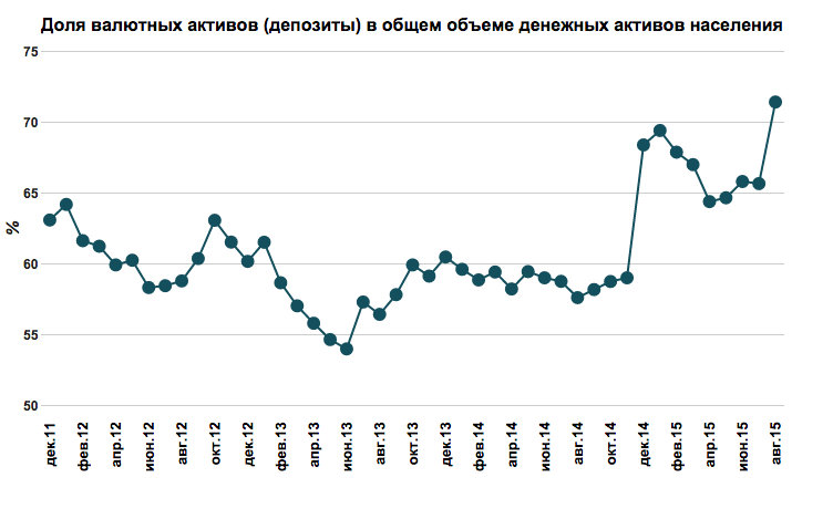 Доля валюты в денежных активах населения достигла максимума с 90-х годов.