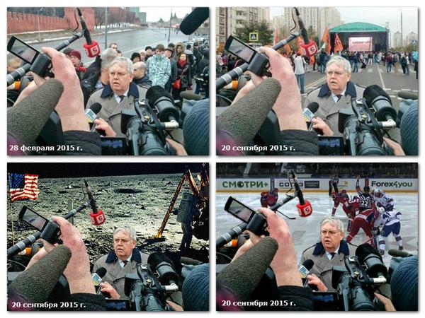 На исходной фотографии Теффт общается с прессой около Большого Москворецкого моста на месте убийства Бориса Немцова. В качестве источника фейкового фото указан «Твиттер».