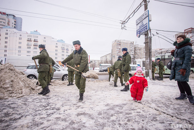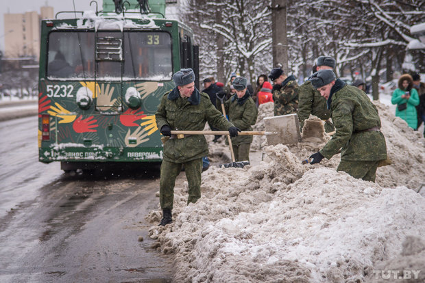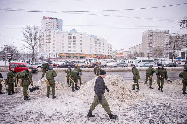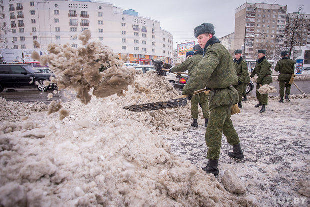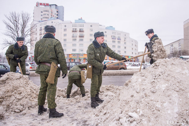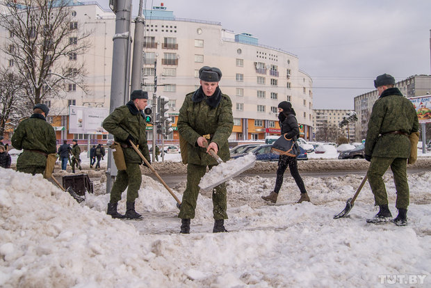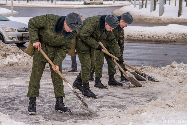 Курсантов Военной академии в Минске бросили воевать со снегом