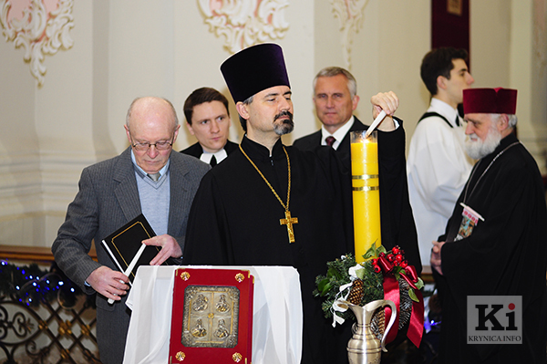 Открывая богослужение, архиепископ Тадеуш Кондрусевич подчеркнул, что причина, по которой в храме собрались представители разных конфессий, очевидна: «Мы все верим в одно и то же Евангелие».