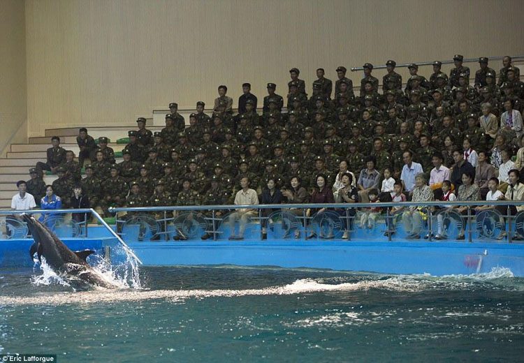 «Во время визита в дельфинарий в Пхеньяне вы можете фотографировать животных, но не военных, которые составляют 99% зрителей».