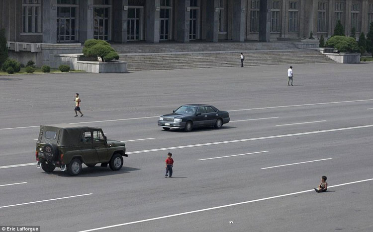 «Хотя машин в Пхеньяне становится все больше, простой народ к ним еще не привык. Дети продолжают играть посреди дороги, словно не замечая проезжающих мимо автомобилей».
