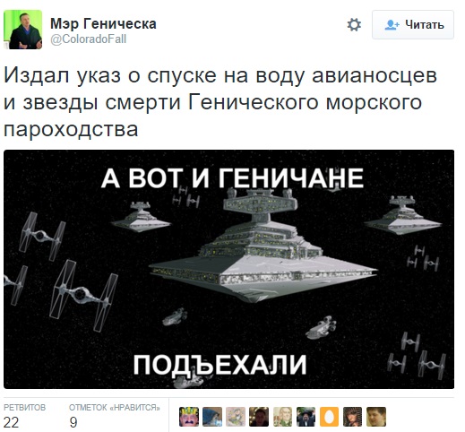 В социальной сети Twitter аккаунт "Мэр Геническа" обрел настоящую популярность.