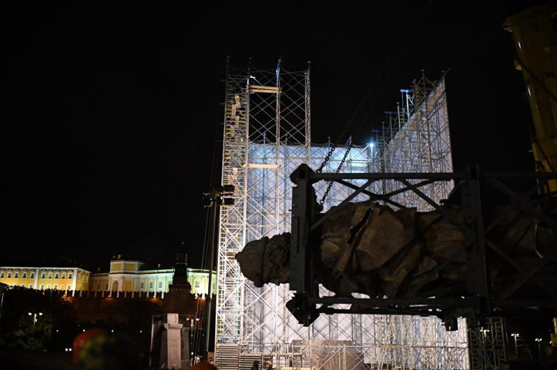 На Боровицкой площади в Москве начали устанавливать памятник киевскому князю Владимиру (скульптор - Салават Щербаков).