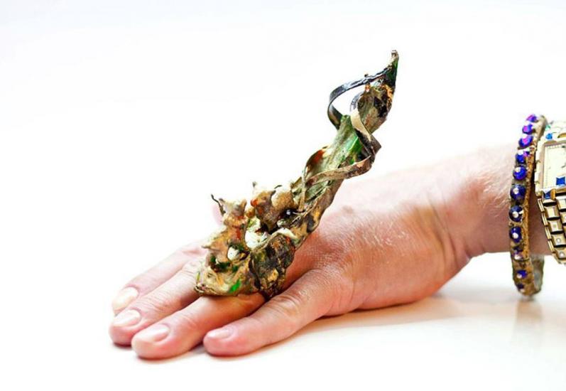 - Обожаю все, правда. Я даже своим клиентам завидую. Жалко отдавать работы... Но больше всего, наверное, я намудрил с кольцом для Джека Воробья (для Джонни Деппа. - Ред).Там был мореный дуб, серебро, золотые нити, ракушки, изумруды, сургуч, канат… Чтобы достичь желаемого результата, пришлось даже жечь дуб. С какой целью? Трактовать процесс создания невозможно. Меня же в детстве молния ударила! Наверное, это оттуда (смеется).