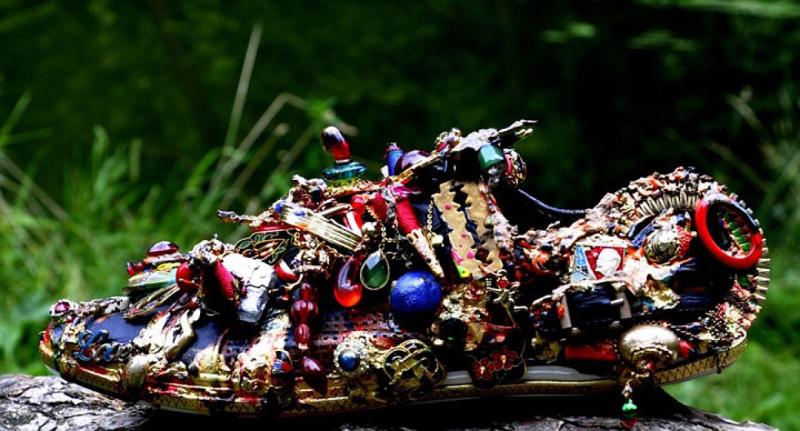 - Есть такое, мне интересно, чтобы краска не читалась так, как задумали ее производители. Всегда что-то смешиваю. И цвета, и материалы. Могу пластик совместить с драгметаллом. А потом туда и изумруда, и золота. Для туфель Моники Белуччи, к примеру, использовал перламутр, тертый с краской. Мне важно, чтобы фактура удивляла. Но ее ж нужно придумать и произвести. На это может уйти не один месяц. Придумываешь, тестируешь, как материал себя ведет. На все свои вещи даю пожизненную гарантию. Даже на стразы для сумочки Патрисии Каас.