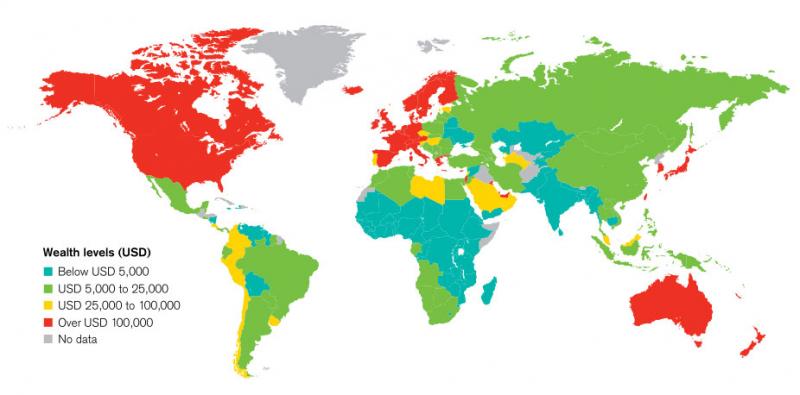 Швейцарская компания Credit Suisse опубликовала отчет об уровне благосостояния в различных странах мира.